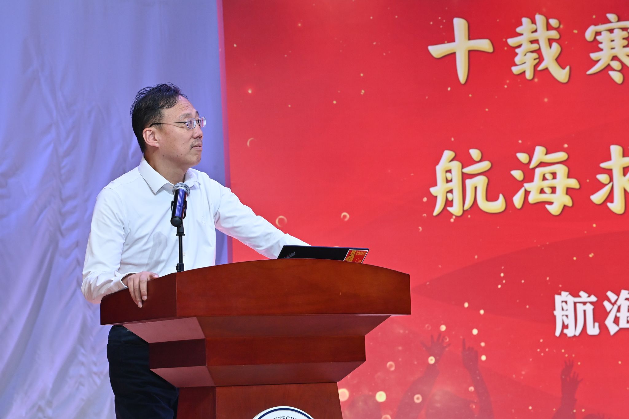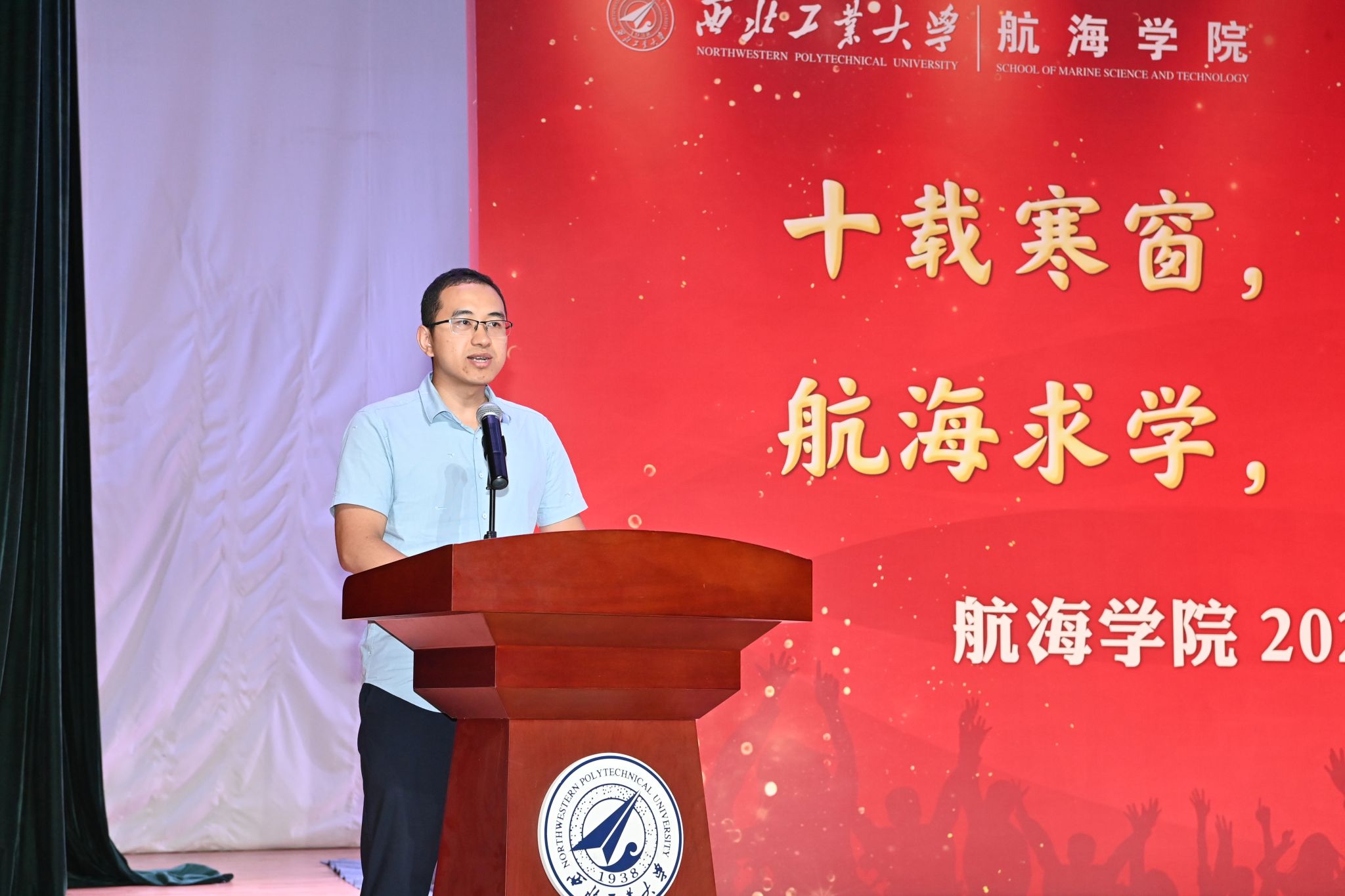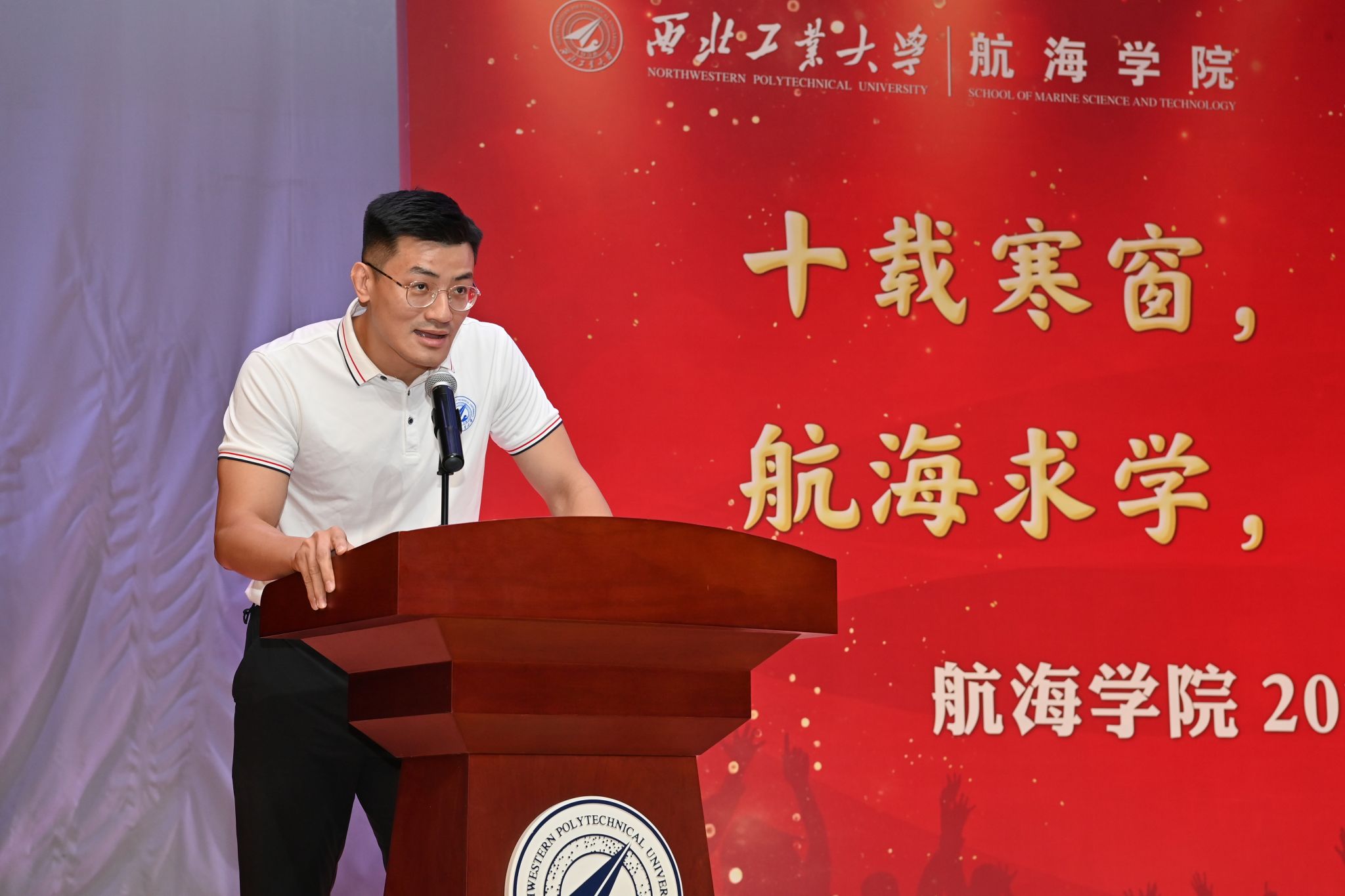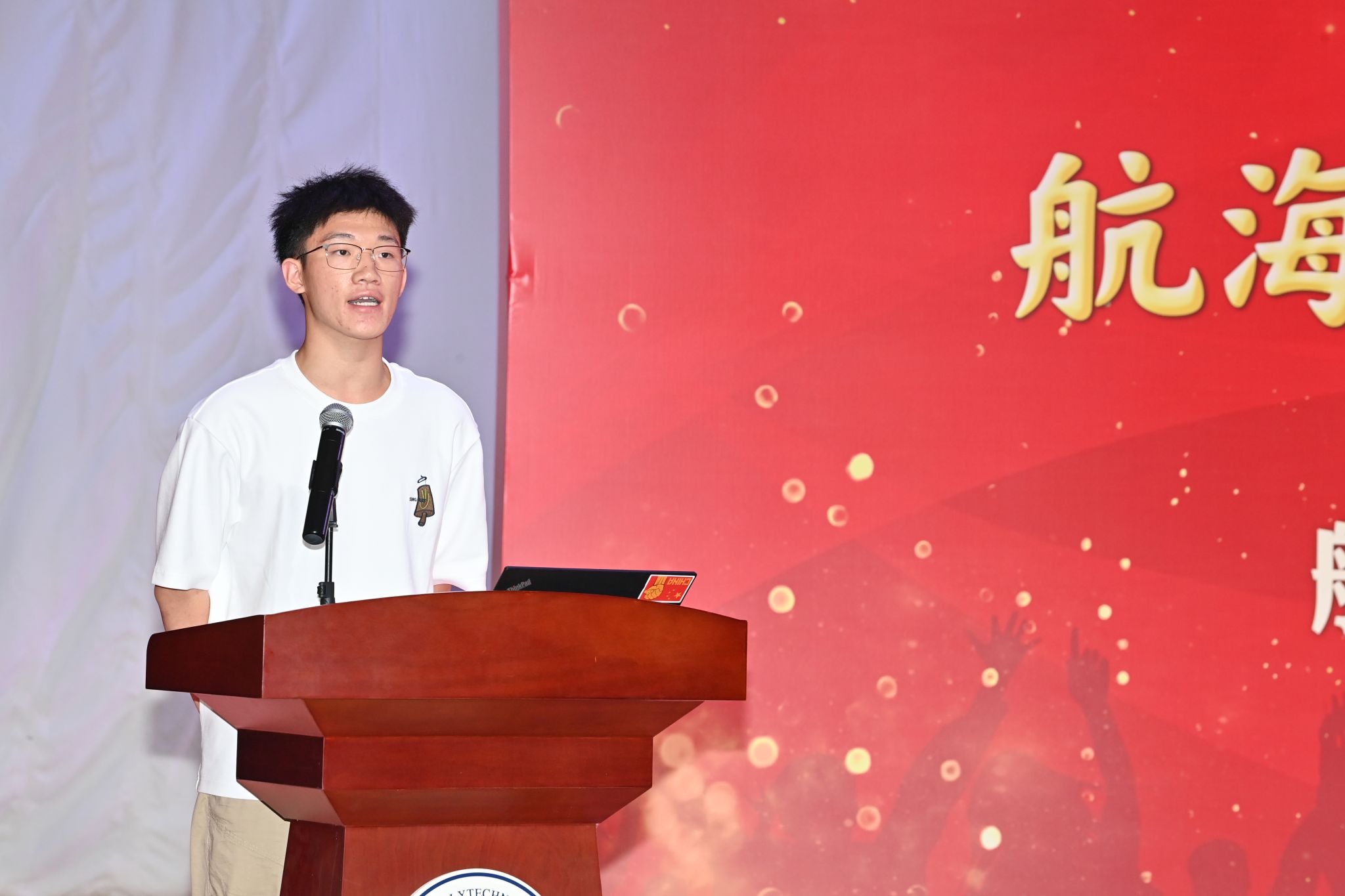 在新生见面会赠送书籍环节,潘光院长和孙华强书记向新生代表赠送了《三体》与《碧海丹心》,希望通过这两本书告诫同学们在大学期间广泛涉猎知识、开拓视野,同时不忘历史,学习并传承航海精神,早日成为国家的栋梁。