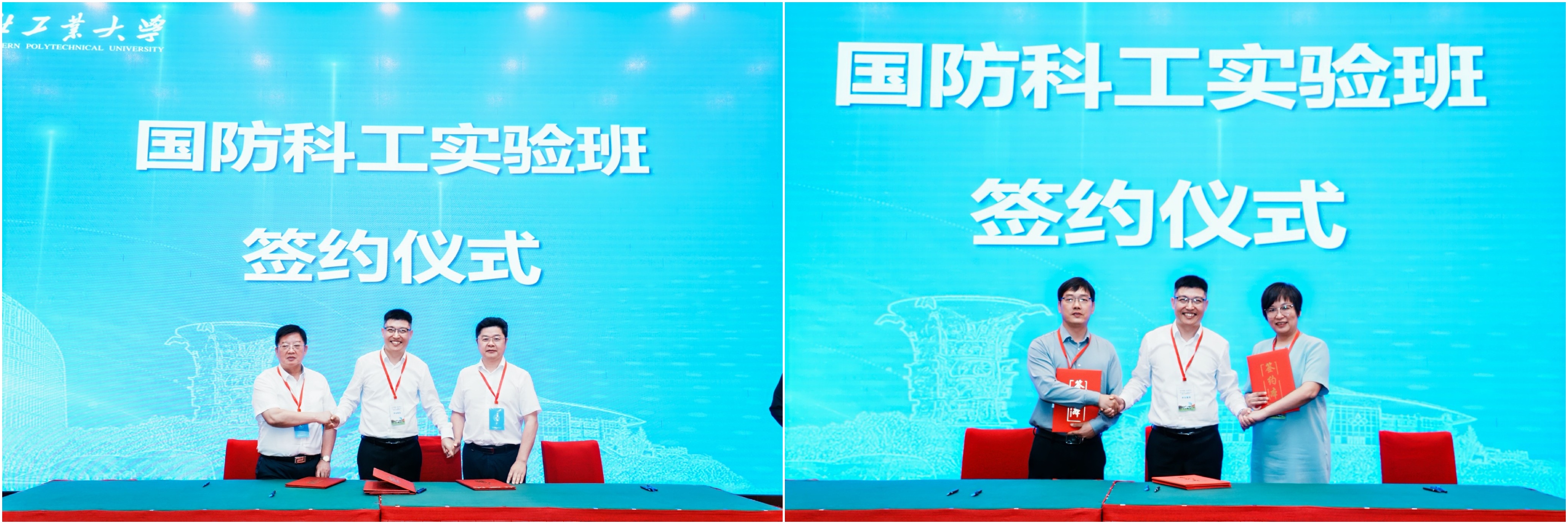 学校与湖南师范大学附属中学、长沙市周南中学、柳州铁一中学、桂林市国龙外国语学校举行了首批国防科工实验班签约仪式,进一步加强我校与湘桂重点中学的协同育人机制,积极探索国防科工拔尖创新人才培养新模式。