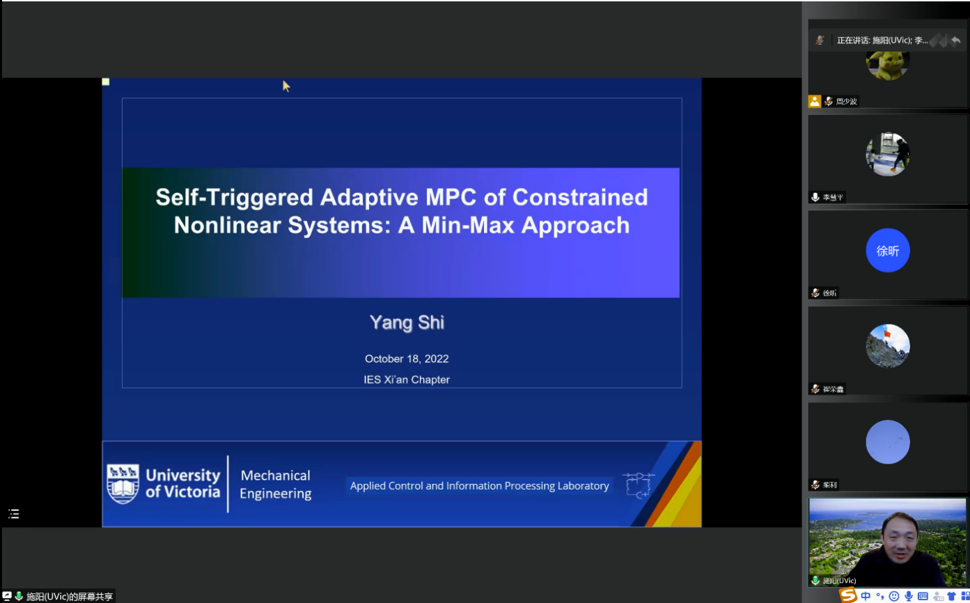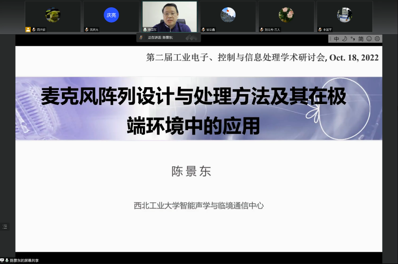 2022年10月18日,“第二届工业电子、控制与信息处理学术研讨会”在beat365亚洲体育在线官网举行,受疫情影响,此次会议采用线上直播形式进行。此次会议由中国自动化学会平行控制与管理专业委员会、自动化学会预测控制与智能决策专委会、beat365亚洲体育在线官网、IEEE西安IES Chapter等单位支持举行,由beat365亚洲体育在线官网李慧平教授和崔荣鑫教授主持。来自加拿大维多利亚大学、北京大学、上海交通大学、beat365亚洲体育在线官网、国防科技大学和浙江大学等高校的专家以及学生参加了会议。