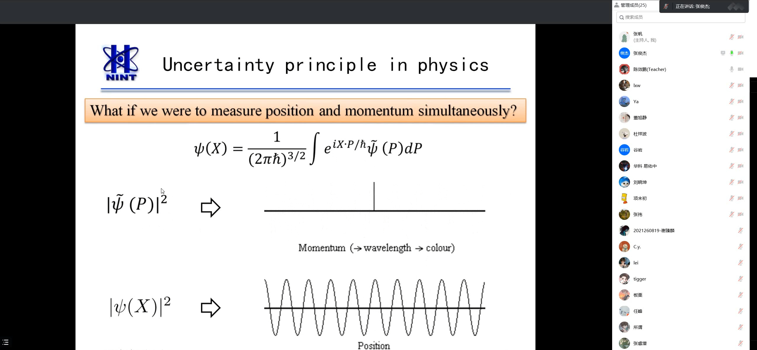 10月20日,西北核技术研究所张俊杰博士应beat365亚洲体育在线官网陈效鹏教授的邀请,为学院师生作“航海大讲堂”系列讲座(二十四)——《深度神经网络的不确定原理》的学术报告。由于疫情原因,会议在线上举行。会议由陈效鹏教授主持,学院20余名师生参会。